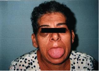 posljedica aktivnosti somatotropinoma, kao i brzo umaranje. Od simptoma koji se kasnije javljaju treba spomenuti postepeni gubitak sluha, zatim utrnulost zglobova, ruku i nogu, zadebljanje usana, jezika ( slika 1 ) i mekih dijelova nosa i ušiju, povecanje stopala i šaka, kao i stvaranje nabora na celu. Komplikacije sa vidom cesto su prisutne i zavise od pravca rasta tumora. Kod žena je cesto poremecen menstrualni ciklus, pojava iscjedka iz dojke može, ali i nemora biti prisutna, ali je cesta kod mješanih tumora koji izlucuju hormon rasta i prolaktin. Kod muškaraca sa akromegalijom može doci do gubitka potencije.